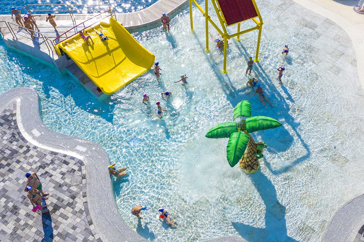 Il Parco Acquatico vanta di una piscina semiolimpionica dove praticare il nuoto per poter rimanere in forma anche durante le vacanze, uno Spray Park dove i bambini possono giocare e divertirsi in sicurezza sorvegliati dai nostri bagnini ed un Wellness Park con getti d’acqua e idromassaggio, perfetto per rilassarsi nei giorni in cui non hai voglia di fare il bagno al mare.
